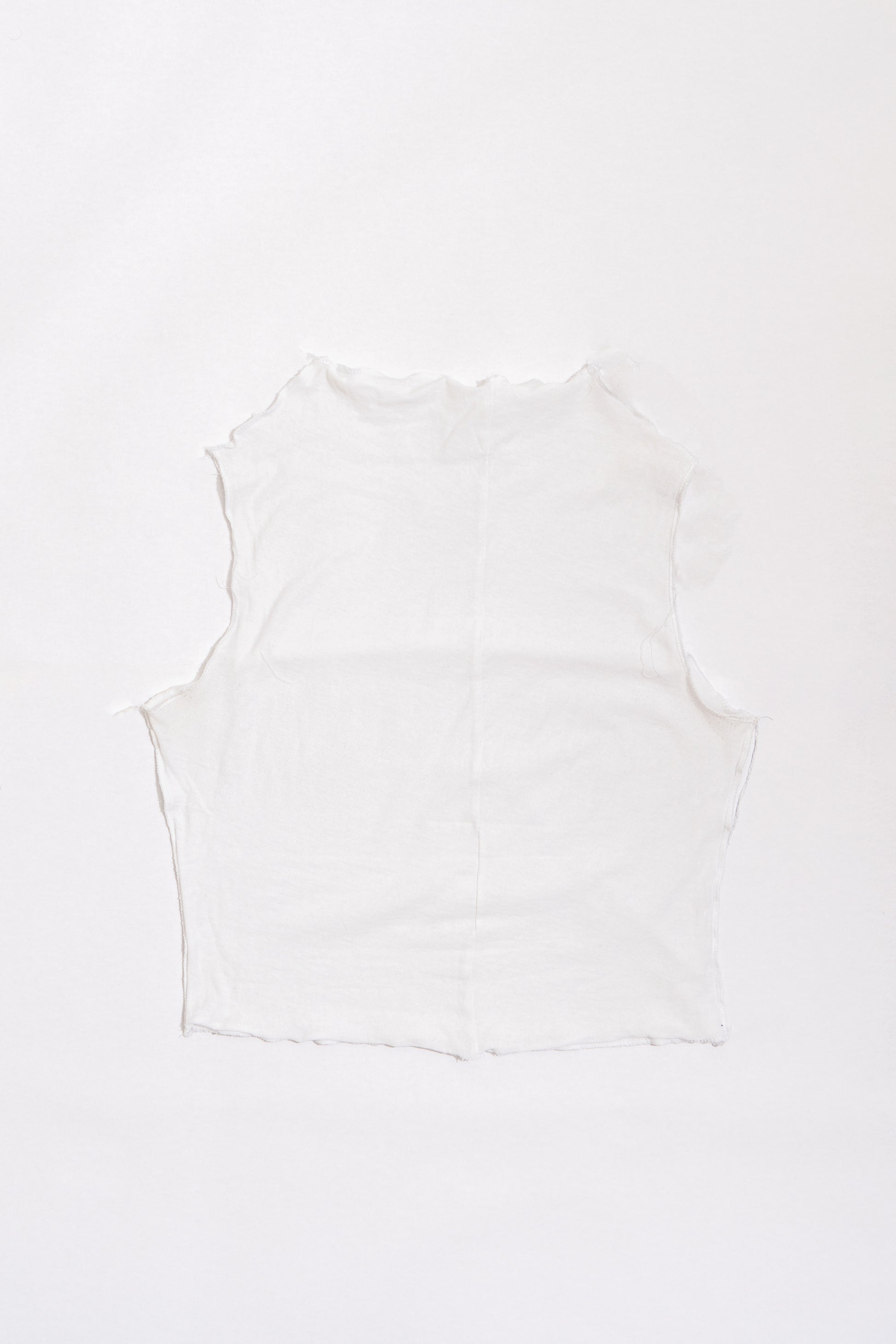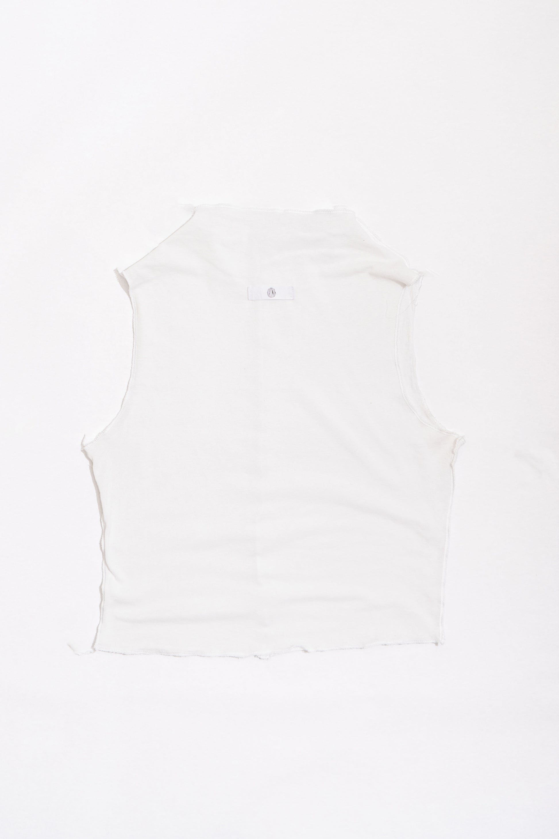 The draped-neck tank top featuring exposed overlock seams and finishings.